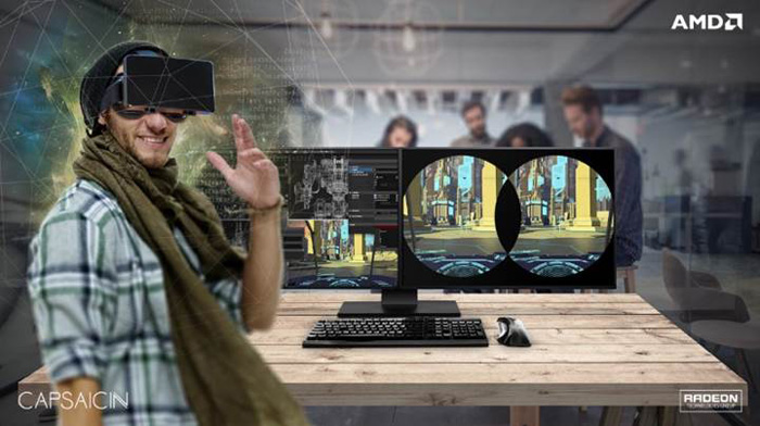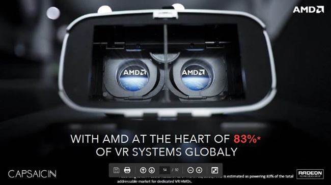 Etkinlikte AMD adına konuşma yapan ekran kartı yani Radeon Bölüm Başkan Yardımcısı Raja Koduri, AMD’nin dünya genelinde bir sanal gerçeklik ekosistemi kurmaya çalıştığını ve bu sayede kürsel olarak pazarın yüzde 83‘üne sahip olduklarını tahmin ettiklerini söyledi. Koduri bu payın büyük çoğunluğunun Çin’de oluşturulan VR Cafe’lerin, Oculus, Valve, HTC ve Crytek gibi firmalar ile yapılan ortaklıkların ve 10’dan fazla köklü üniversite ile yapılan işbirliklerinin bir sonucu olduğunu söyledi.