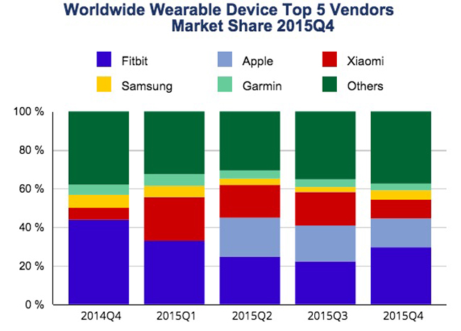 Fitbit ise Apple Watch‘un bir iş yapamadığı üçüncü çeyrek ve dördüncü çeyrek aralığında oldukça iyi iş çıkarmış ve rapora göre Fitbit dördüncü çeyrek 8.1 milyon adetlik satış gerçekleştirmiş. Fitbit bu sayede son çeyrekte pazar payını tam olarak yüzde 7.3 büyütmüş.
