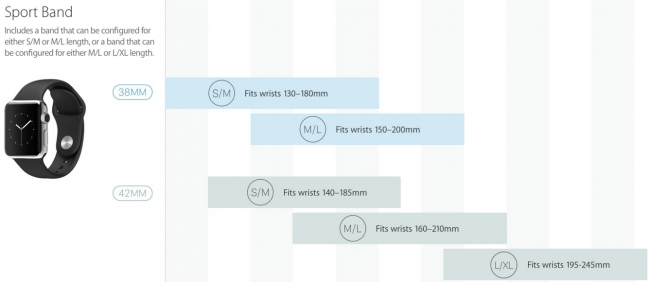 Daha önce Apple Watch ile sunulan kayışlar 38mm için Small/Medium olarak 130mm ile 180mm arasında bir uzunluk sunarken 42mm için Small/Medium olarak 140mm ile 185mm arasında bir uzunluk sunuyordu. Şimdi ise bu kayışlara ek olarak Medium/Large ve Large/Xlarge kayış seçenekleri de eklenerek kayış uzunlukları 245mm‘ye kadar çıkmış oldu.