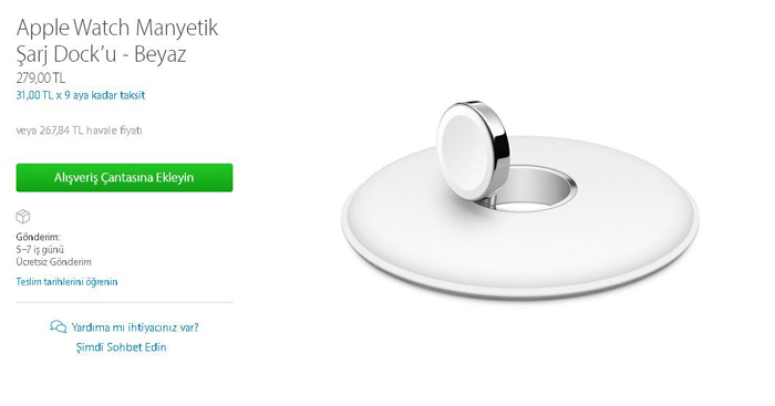 Dün akşam saatlerinde Apple Watch için manyetik şarj docku adı ile bir ürün internette dolaşmaya başlamıştı ve Apple’dan uzun süredir beklenen bu ürünün ortaya çıkması kullanıcıları sevindirmişti. Aradan çok geçmeden Apple kendi sitesi üzerinden internette görselleri dolaşan manyetik şarj dockunu satışa sundu.