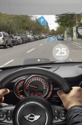 Artırılmış Gerçeklik MINI Augmented Vision Artırılmış Gerçeklik Gözlüğü MINI otomobil markasının trafikte daha kolay ve güvenli bir seyir için geliştirmiş olduğu artırılmış gerçeklik gözlüğü MINI Augmented Vision.