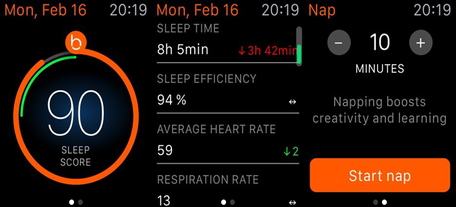 Beddit bununla birlikte kullanıcıların uyku dışındaki hareketlerini izlemek için de bir Apple watch uygulaması geliştirmiş ve normal hayatta da takipleri akıllı saat üzerinden yapıyor. Aynı şekilde örneğin kullanıcı gece su içmek için uyandığında devreye Apple Watch giriyor ve nabız ve nefes alışverişi buradan takip edilerek uyku ve sağlık takibinde herhangi bir kesinti olmuyor.