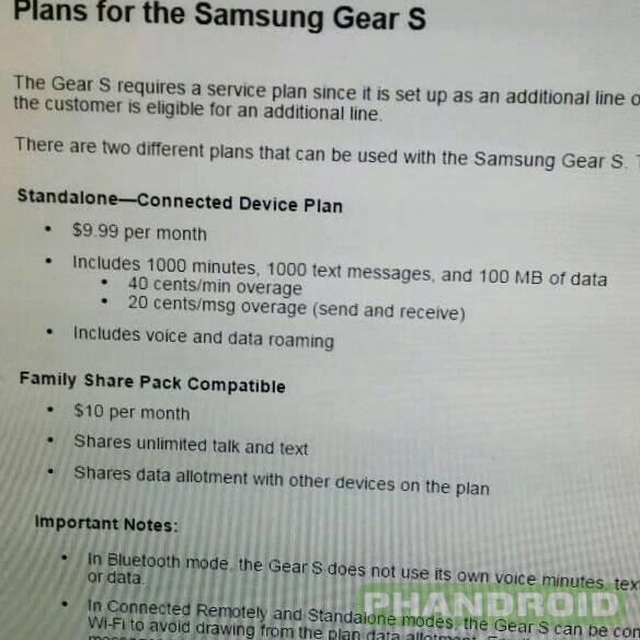 Phandroid tarafından sızdırılan bir görselde merak edilen bu sorunun cevabı bulundu. Sprint tarafından hazırlanan planda Samsung Gear S’e 1000 dakika, 1000 SMS ve 100 MB internetin olduğu bir kullanım ve fiyatlandırması çıkarılmış. Aylık ücretin ise 9.99 dolar olarak belirlendiği bu planda ekstra 10 dolar karşılığında paket içerisindekileri sınırsız yaparak aile içinde paylaşmak da mümkün.