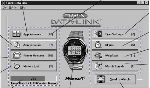 En ilginç özelliği ise Microsoft bilgisayarlar için geliştirilen senkronizasyon yazılım olması. Tıpkı iTunes’u iPhone‘a eşlemek gibi bu akıllı saati de bilgisayarınızla eşleyerek belirli ayarlamaları yapabildiğiniz bu yazılımın olması o dönemin teknolojisine göre zamanın ötesinde… Özel yazılımın ekran görüntüsünü alt kısımda görebilirsiniz.