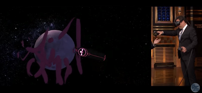 Geçtiğimiz sonbaharda Google‘ın satın aldığı 3 boyutlu boyama teknolojisi geliştiren Tilt Brush‘ın bir uygulamasını deneyen Fallon, HTC Vive sanal gerçeklik başlığı ile canlı olarak bir boyama gerçekleştirdi. Yukarıda bulunan videoda Jimmy Fallon’un HTC Vive ile geçirdiği imtihanı ve eğlenceli dakikaları izleyebilirsiniz.