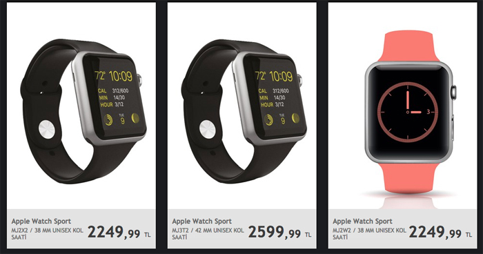 Çeşitli sitelerde Apple Watch‘u bulmak mümkündü ancak kurumsal alanda bir ilk yapan Markafoni aynı zamanda Apple Watch’un fiyatını da belirleyen ilk isim oldu. Apple Watch‘un Sport modelinden 4 farklı renk seçeneğini ve 38 ve 42mm olarak iki farklı boyutta sunan Markafoni toplamda 7 model satışa sunarken Apple Watch Sport 38mm 2.249 TL’den, Apple Watch Sport 42mm ise 2.599 TL’den satışa çıkarılmış.