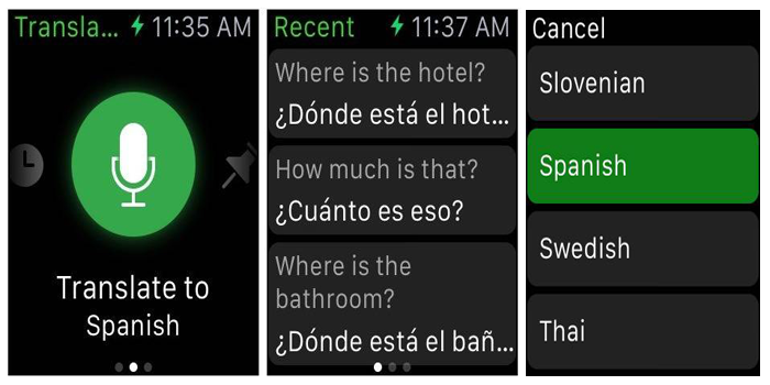 Microsoft Translator uygulamasının akıllı saatler üzerindeki konuşma ile çeviri yeteneği ise akıllı saatlerin ufak ekranlarındaki kullanım problemini ortadan kaldırarak kullanıcıların bilinmeyen kelime ya da cümlelerin konuşarak kendi diline çevirmesini kolay bir şekilde sağlıyor. Aynı şekilde dili bilinmeyen yabancı bir kişiyi bu uygulamaya konuşturarak rahatlıkla iletişim kurmak da mümkün.