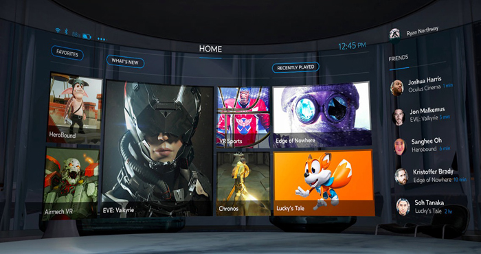 Burada hem sanal gerçeklik gözlüğü ile hem de gözlüğü takmadan çalışabilen Oculus Home, kullanıcıların ürün için oyun ön izlemelerine, oyun indirmelerine, içerik satın almalarına ve arkadaşları ile etkileşim kurmalarına olanak sağlıyor.