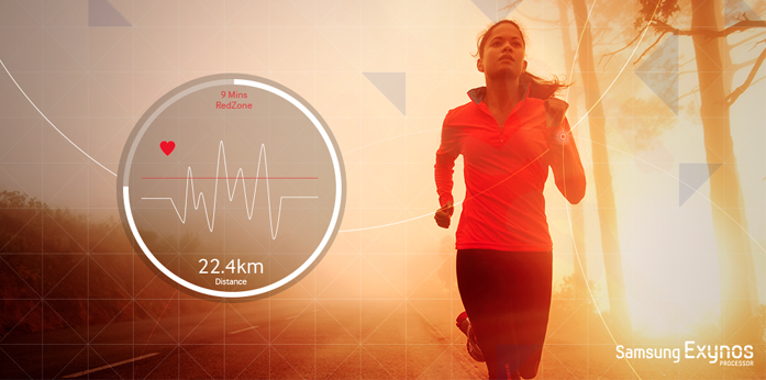 SamsungExynos hesabı üzerinden paylaşın bu görselde, sağda koşan bir bayan ve solda da bir akıllı saatin yuvarlak ekranı yer alıyor. Tweet‘in içeriğinde ise “Exynos tabanlı giyilebilir, sizin nabız bilgileriniz ile birlikte aktivitelerde gelişiminiz için size yardımcı olur. ” ifadesi yer alıyor. Buradan uzun süredir konuştuğumuz Samsung‘un hem yuvarlak ekranlı akıllı saatini hem de akıllı saati için verdiği aktivite takipçisi ve nabız ölçer gibi özellik bilgilerini görüyoruz.