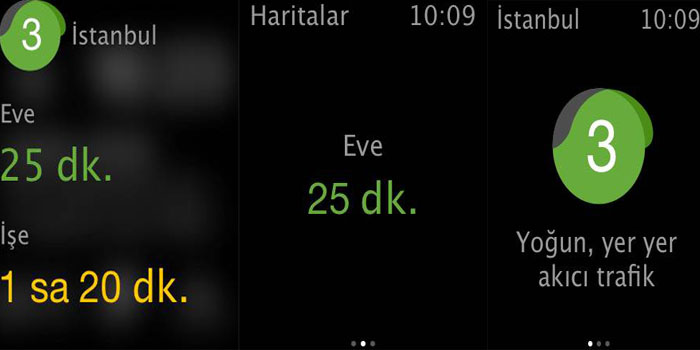Yandex.Haritalar servisinin iOS uygulamasını güncelleyerek Apple Watch desteği kavuşturan Yandex, kullanıcıların mobil uygulama üzerinden yapabilecekleri tüm özellikleri Apple Watch üzerine taşımış durumda. Apple Watch‘un ufak ekranı göz önüne alarak geliştirilen uygulama konuma göre harita servisi sunmanın yanında yine bulunulan konumun trafik durumunu da gösterebiliyor. Bununla birlikte gidilecek yerlere göre de trafik durumunu ölçerek varış mesafesi ve varış süresi çıkarabilen uygulama önceden belirlenmiş konumlara göre de özet sayfasından anlık bilgiler sunabiliyor.