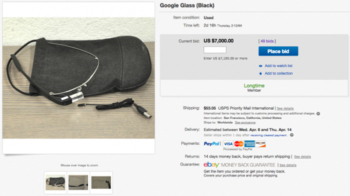 Bu olayı başlatan ise Google‘ın kendisi değil azpawnbroker isimli ve yüzde 99 olumlu satış sonucuna sahip bir satıcı. İşin ilginç yanı ise bu üyenin satışa sunduğu Google Glass’ın ilk Google Glass’a benzemiyor olması. Yani şuan için bu akıllı gözlüğün Enterprise Edition olup olmadığı bilinmiyor ancak kullanıcı açık artırma ile bu ürün için 7000 dolara kadar ulaşmış.